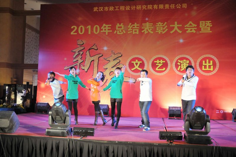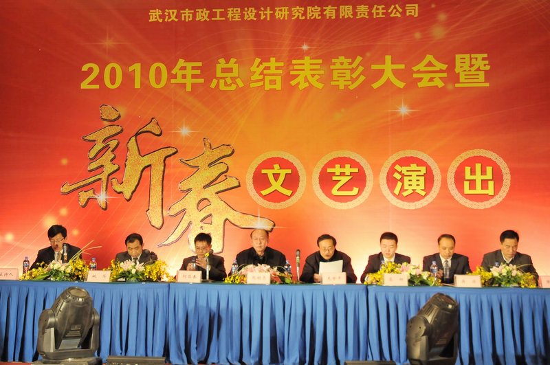 121下午,香格里拉酒店漢陽廳內(nèi)燈火輝煌,氣氛熱烈,公司2010年年終總結(jié)表彰大會暨春節(jié)文藝演出在這里隆重召開。市城建委副主任熊明亮、總工程師龍世平及相關(guān)處室領(lǐng)導出席了會議。