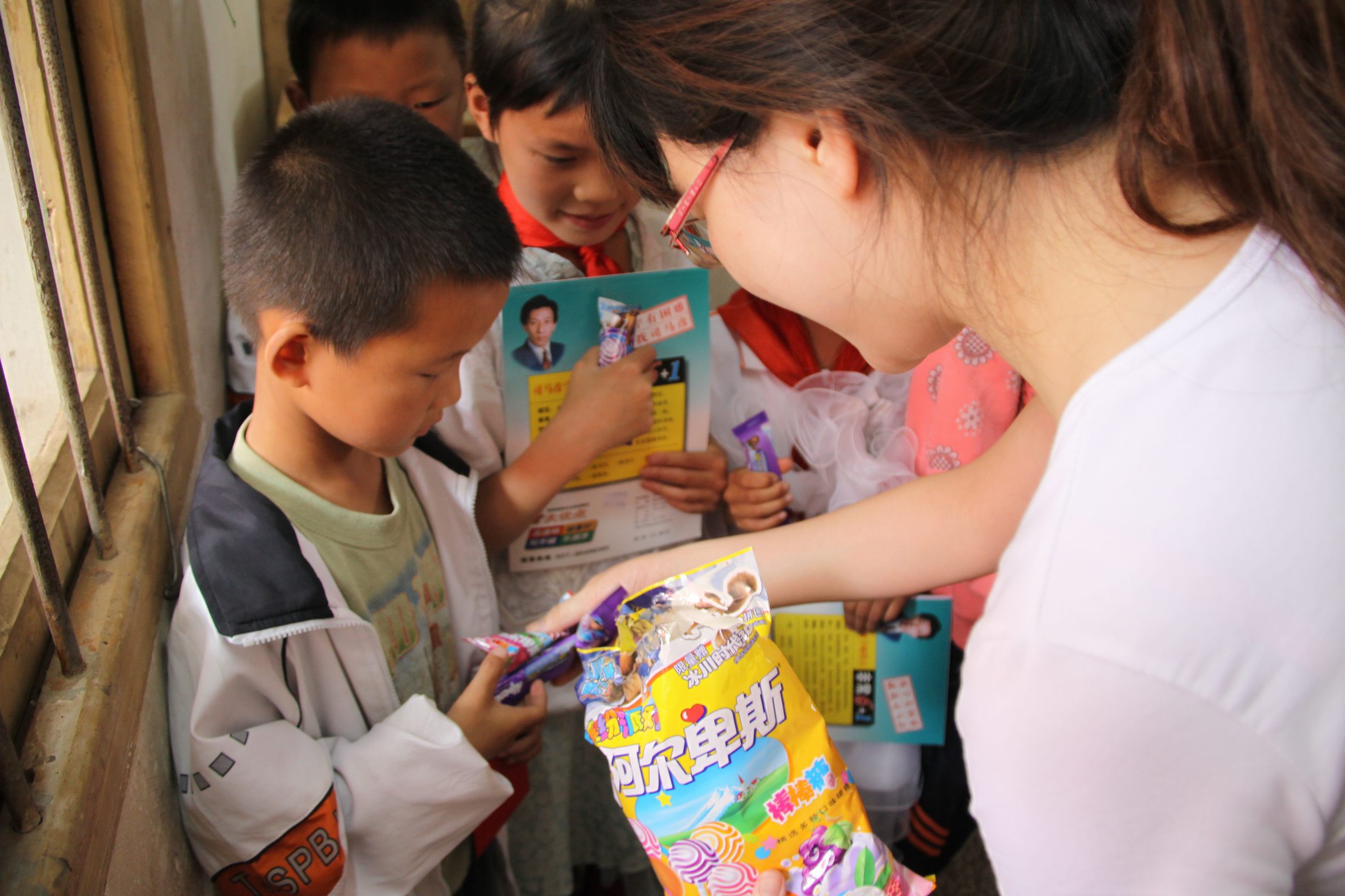 ??? 活動(dòng)過(guò)程中,青年志愿者代表還向孩子們贈(zèng)送了自費(fèi)購(gòu)買的書(shū)籍、體育用品、衣服、糖果等,在孩子們中間引起了熱烈的反響。