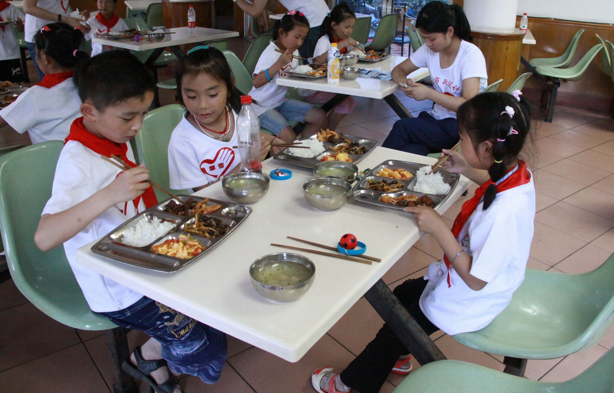 ??? 結(jié)束了一天的行程,志愿者與孩子們回到公司吃晚飯,孩子們有秩序的排隊(duì)領(lǐng)取晚餐,吃的干干凈凈。這時,志愿者們端出了準(zhǔn)備好的蛋糕,為這群7-9歲的孩子們過一個集體生日,大家唱著生日歌,一起吹滅了蠟燭。志愿者們將蛋糕分發(fā)給每一個孩子,他們吃的津津有味。