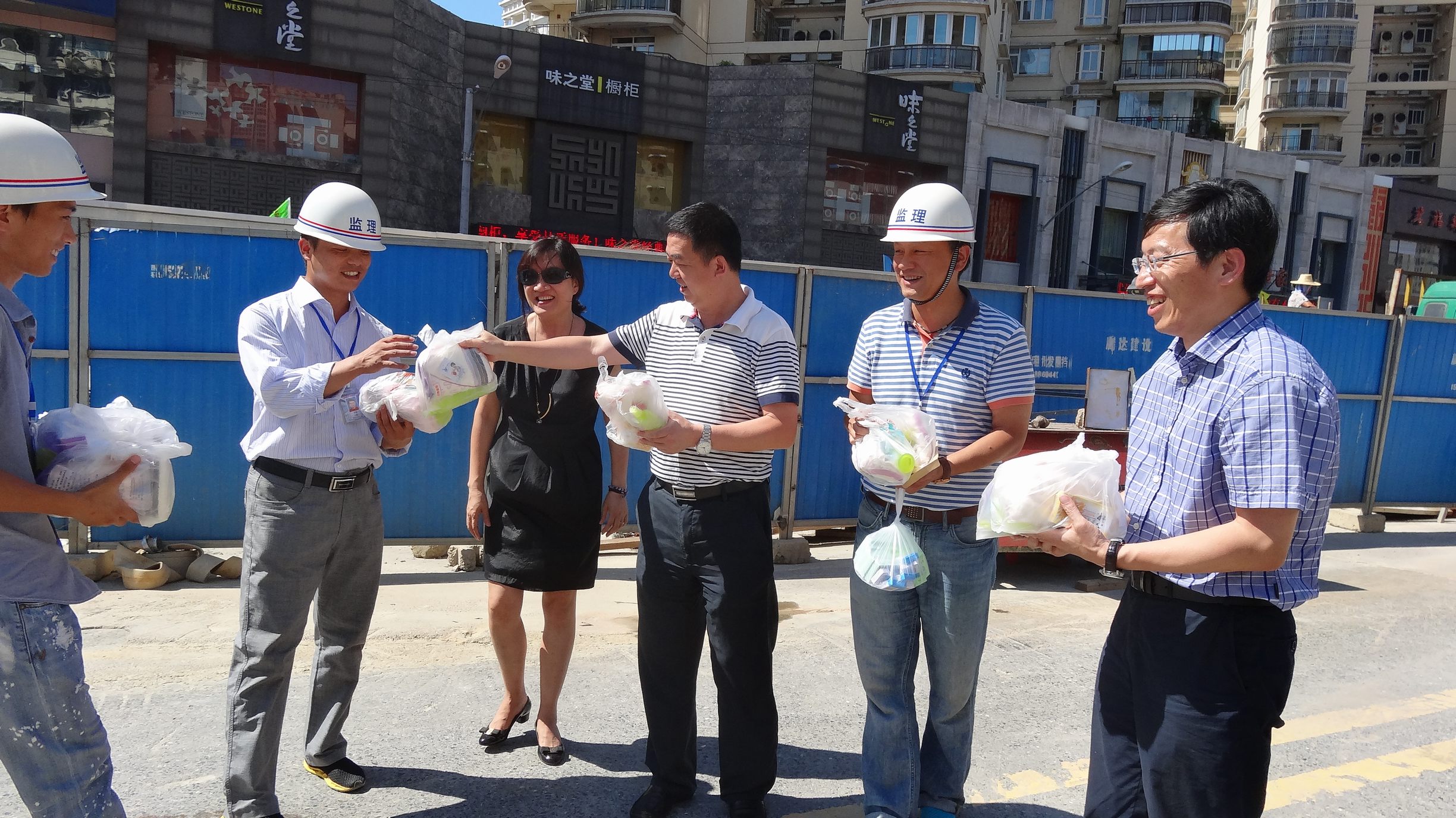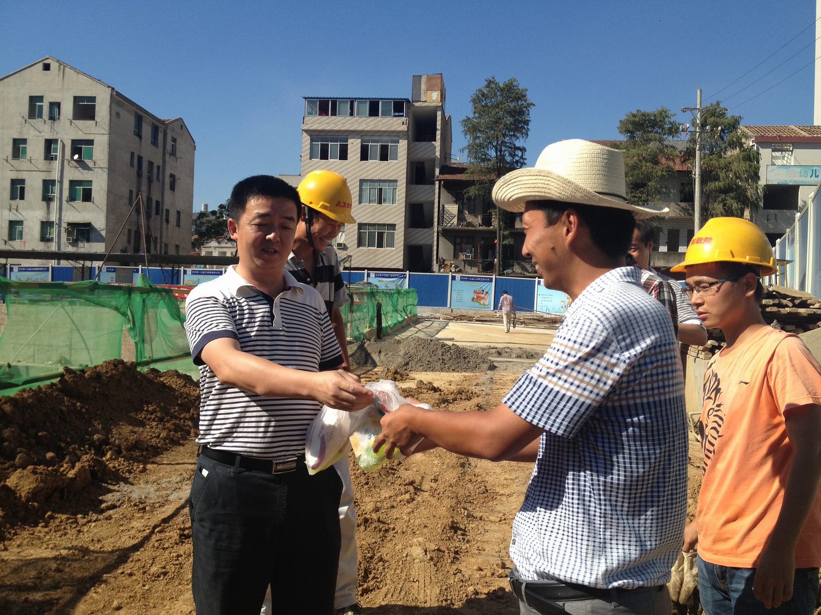??? 近段時(shí)間,武漢市出現(xiàn)了連續(xù)高溫天氣,但為了保障所承擔(dān)項(xiàng)目的按時(shí)推進(jìn),公司監(jiān)理、勘測(cè)、測(cè)試等外業(yè)人員仍然在烈日下堅(jiān)守工作崗位。8月16日,公司黨委書記蔡輝、副總經(jīng)理趙世杰、總經(jīng)理助理胡軍等一行在監(jiān)理公司、勘測(cè)設(shè)計(jì)院負(fù)責(zé)人的陪同下,對(duì)部分工地進(jìn)行了走訪慰問(wèn),為高溫下堅(jiān)持工作的員工送上一份清涼。