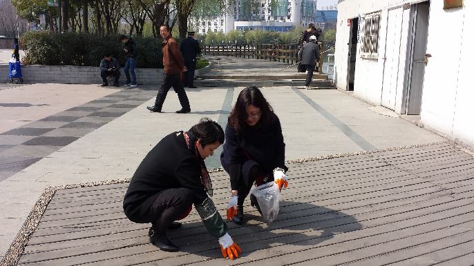 ??? 隨后,黨員們跟隨著區(qū)湖泊管理所的專家來到了公司附近的后襄河公園,開展了湖泊清潔活動。大家沿著湖邊行走,撿拾起路邊、湖邊的垃圾。湖泊管理所的專家以后襄河公園的湖泊現(xiàn)狀為例,講解了湖泊保護的常識。