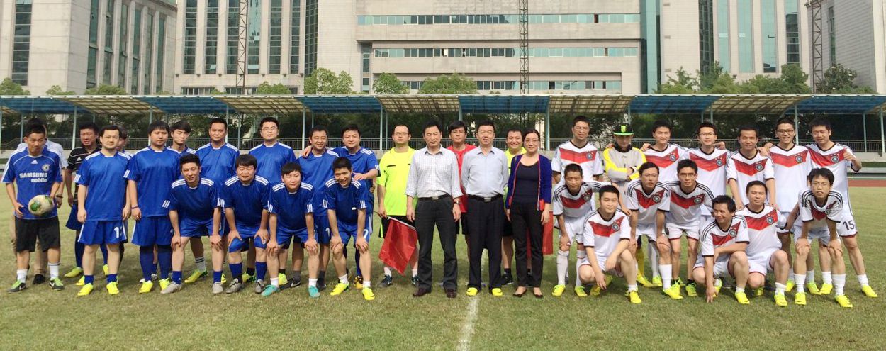 ??? 5月7日下午,位于北湖的漢口體育中心內(nèi)人聲鼎沸,活力四射,公司“慶五四”足球友誼賽在這里舉行。公司黨委書記蔡輝、副總經(jīng)理張偉及各分工會(huì)主席、部門負(fù)責(zé)人到現(xiàn)場觀看了比賽。